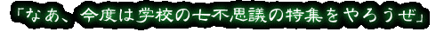 新聞部は、夏休み前の学校新聞で「学校の七不思議」を特集することになった。