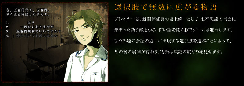 七人の学生を集めて、彼らから怖い話を聞き、それを特集としてまとめるのだ。